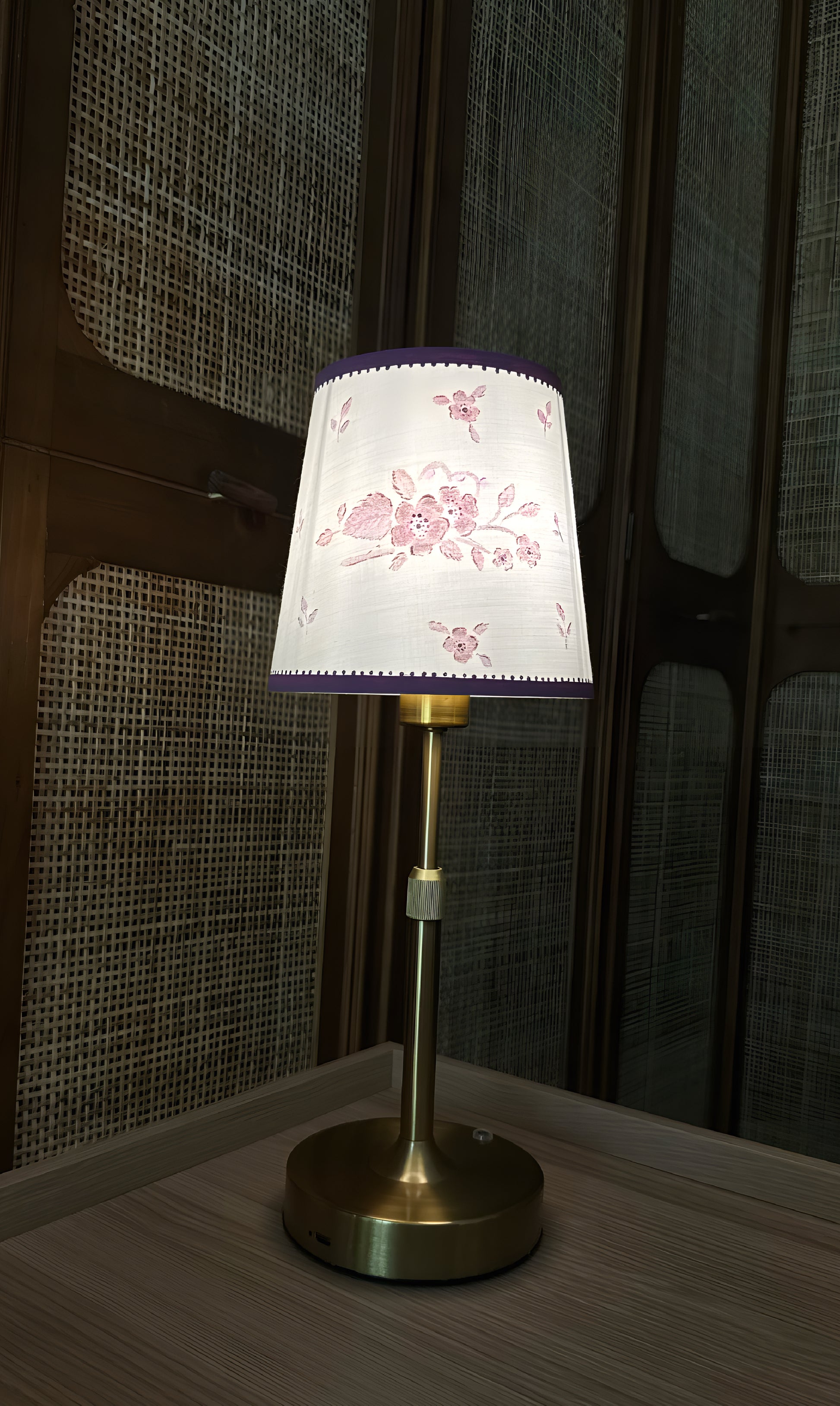 Rechargeable lamp with a single touch light button. The height is adjustable, making it both functional and stylish